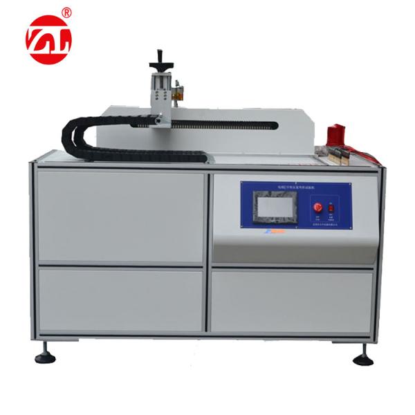 The test machine is to apply a certain force on the wire sample, simulate the motion with the manipulator and other mobile devices, to assess the mechanical durability of the wire life test.This test machine contains the glass observation window of safety protection switch and the cover plate of moving parts, which can effectively prevent the occurrence of safety accidents. It is also equipped with the emergency stop button, which can stop the operation of the machine in case of emergency.This machine has high automatization and efficiency, reasonable structure, beautiful appearance and so on, it is the ideal test equipment for producing this kind of wire factory and quality control organization.